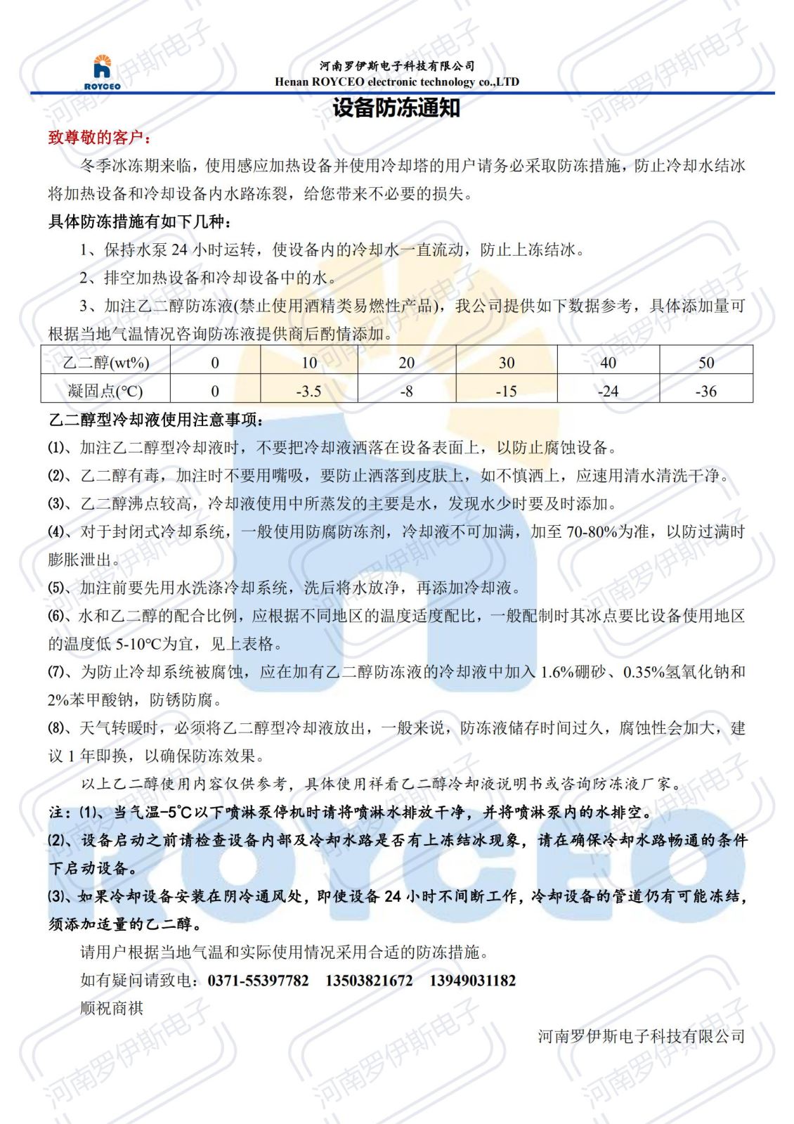 如您在我公司购买的设备发生故障,请立即致电河南罗伊斯电子科技有限公司全国服务热线:0371-55397782告知我公司售后服务人员,我公司将及时安排售后人员处理您的问题。